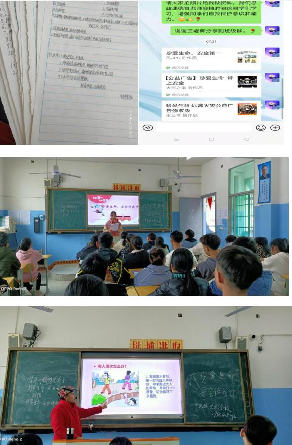 活动中,学校利用校会、班会对教育活动进行布置和安排,利用校工作群、思政课、主题班会、班级微信群、宣传栏等形式进行宣传,积极营造“人人珍爱生命,个个关注安全”的氛围;以班为单位,分班召开以“珍爱生命,安全伴我行”为主题的专题学习,内容丰富,围绕防火、预防溺水事故、交通安全、防校园意外伤害、网络安全教育等方面,通过典型事例讲解、安全个人承诺签名、观看安全教育视频等形式对师生进行一次全面的安全教育。