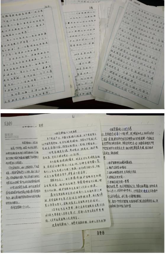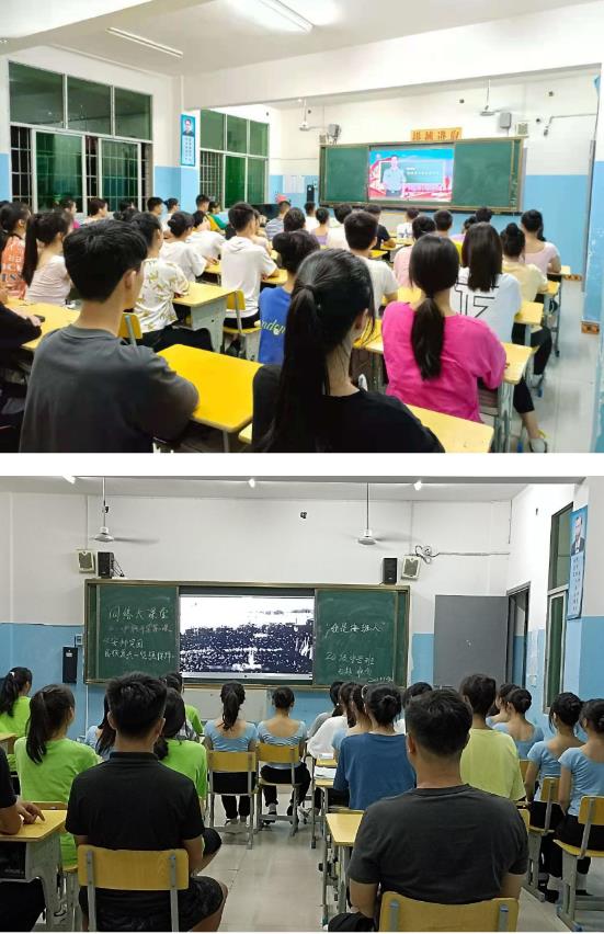 9月7日19:30,第一周值周领导胡小兰校长带着值班老师杨朝辉在18级、19级、20级、21级,四个年级的教室巡视,确认直播设备正常开通。20:00,同学们和班主任欢聚在宽敞明亮的教室里认真地观看了一堂别开生面的直播课---由国防科技大学纪建强副教授带来的开学第一课《安邦定国:民族复兴的坚强保障》,在讨论环节,同学们积极发言,写下了观后感。正如21级新生唐秋玲同学写下的“我们就是接班人,对祖国做贡献不一定要等长大后,现在的我们也可以做到。---国强才能国安。生在中国是多么幸福和幸运。”李畅同学写下了“没有中国共产党的领导,就没有我们如今强大的中国,维护国家安全,人人有责”,每一位同学都认真书写和递交了观后感,这一份份观后感就是新时代中职生的一个个承诺。