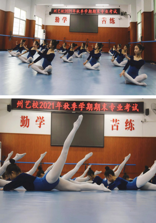 舞蹈专业的考试更是惊喜不断,经过一个学期的勤苦磨炼,同学们的专业水平突飞猛进,新生展示基本功,老生展现技术技巧、演绎民族舞蹈,学生们的成长让领导和老师们赞许、家长们惊叹。