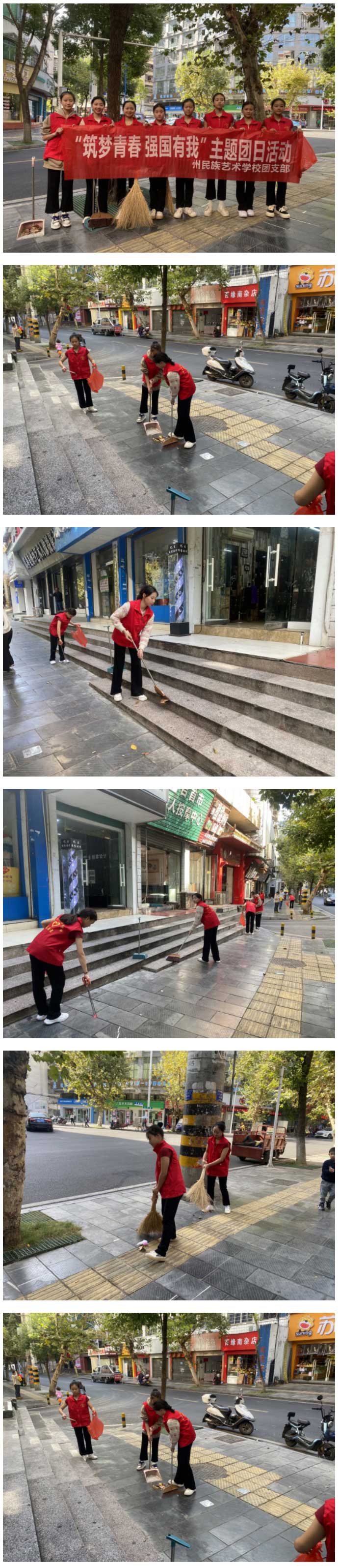 10月31日,州民族艺术学校团支部组织2022级志愿者学生开展“筑梦青春 强国有我”主题团日活动。对文艺路街道进行了清理卫生大扫除,加强道路清扫保洁,努力提高公共环境指数,以整洁的环境来推进文明城市建设,营造良好的社会环境。 活动中,志愿者们拿起扫帚和铁夹互相配合,不怕脏累,仔细清理打扫各处垃圾死角,让环境整洁起来。此次大清扫活动得到了社区居民及过往群众的高度赞扬,学生们以实际行动诠释了“雷锋精神”,传播了文明、团结、奉献、爱心、服务的新风尚,激励了大家在今后的学雷锋活动中更上新台阶。(通讯员:瞿静)