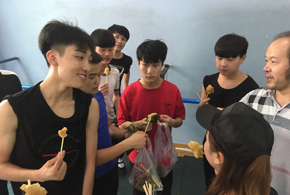 2018年6月16日正值端午假日,为更好的完成州委宣传部下达的任务参加“中国湘西摸泥节北京推介会展演”,由于此次活动时间紧任务重,我校15级学生和排练教师并没有放假,师生共同加班排练为湘西文化旅游添砖加瓦,学校值此对加班加点的师生带来节日慰问。