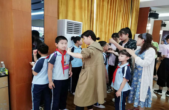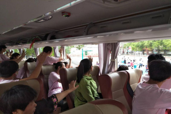 然后志愿者们参观了州特校孩子们学习的教室,欣赏了孩子们美丽的手工艺品和书画作品,用刚学会的手语对州特校师生表达了由衷的赞美,孩子们报以阳光般灿烂的笑容,下午4:16,州艺校文化志愿者们与州特校师生互相挥手告别,车子缓缓开出州特校。