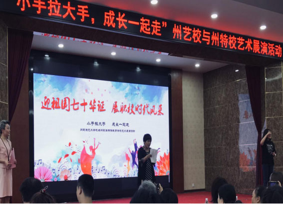 本次展演活动由州艺校的荣萍老师来主持,州特校陈芳老师做手语翻译。