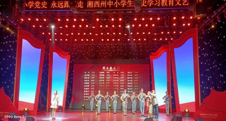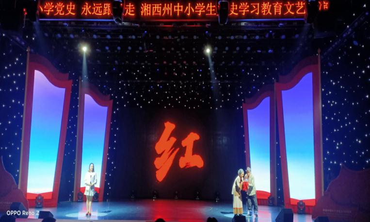 本网讯(通讯员 杨朝辉)2021年5月28日上午,为热烈庆祝中国共产党成立100周年,湘西州教体局主办,湘西州广播电视台承办的“从小学党史 永远跟党走”全州中小学生党史学习教育文艺竞演活动在湘西州广播电视台一号演播大厅举行,有州直县市部分师生等500余人参加了本次活动。29个参赛节目精彩纷呈,通过朗诵、情景剧、音诗画或讲红色故事等不同形式的文艺表演形式,展示了中国共产党百年光辉历程、伟大成就和宝贵经验,生动讲述了中国共产党带领中国人民从站起来、富起来到强起来的历史性飞跃。湘西自治州民族艺术学校参演节目《红》荣获本次竞演活动一等奖。