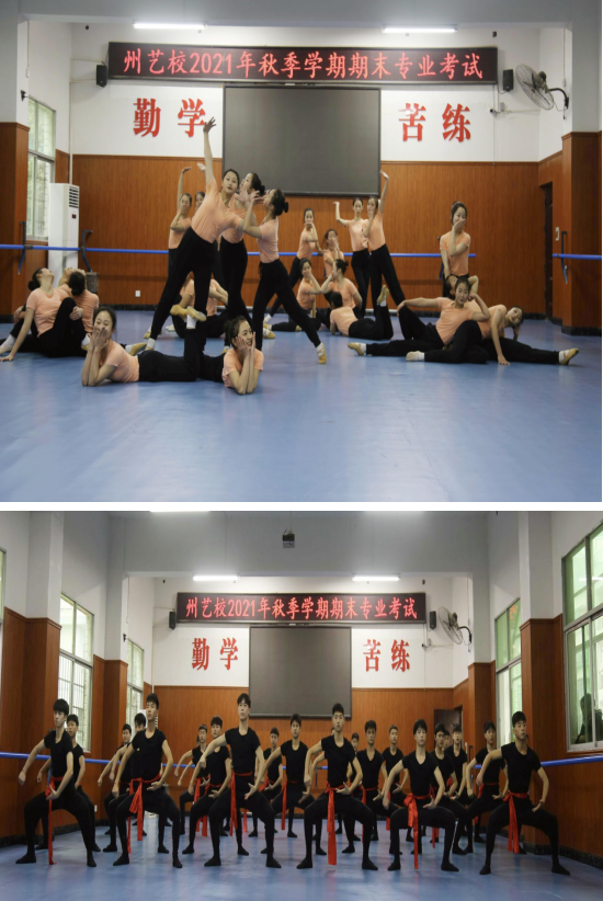 舞蹈专业的考试更是惊喜不断,经过一个学期的勤苦磨炼,同学们的专业水平突飞猛进,新生展示基本功,老生展现技术技巧、演绎民族舞蹈,学生们的成长让领导和老师们赞许、家长们惊叹。