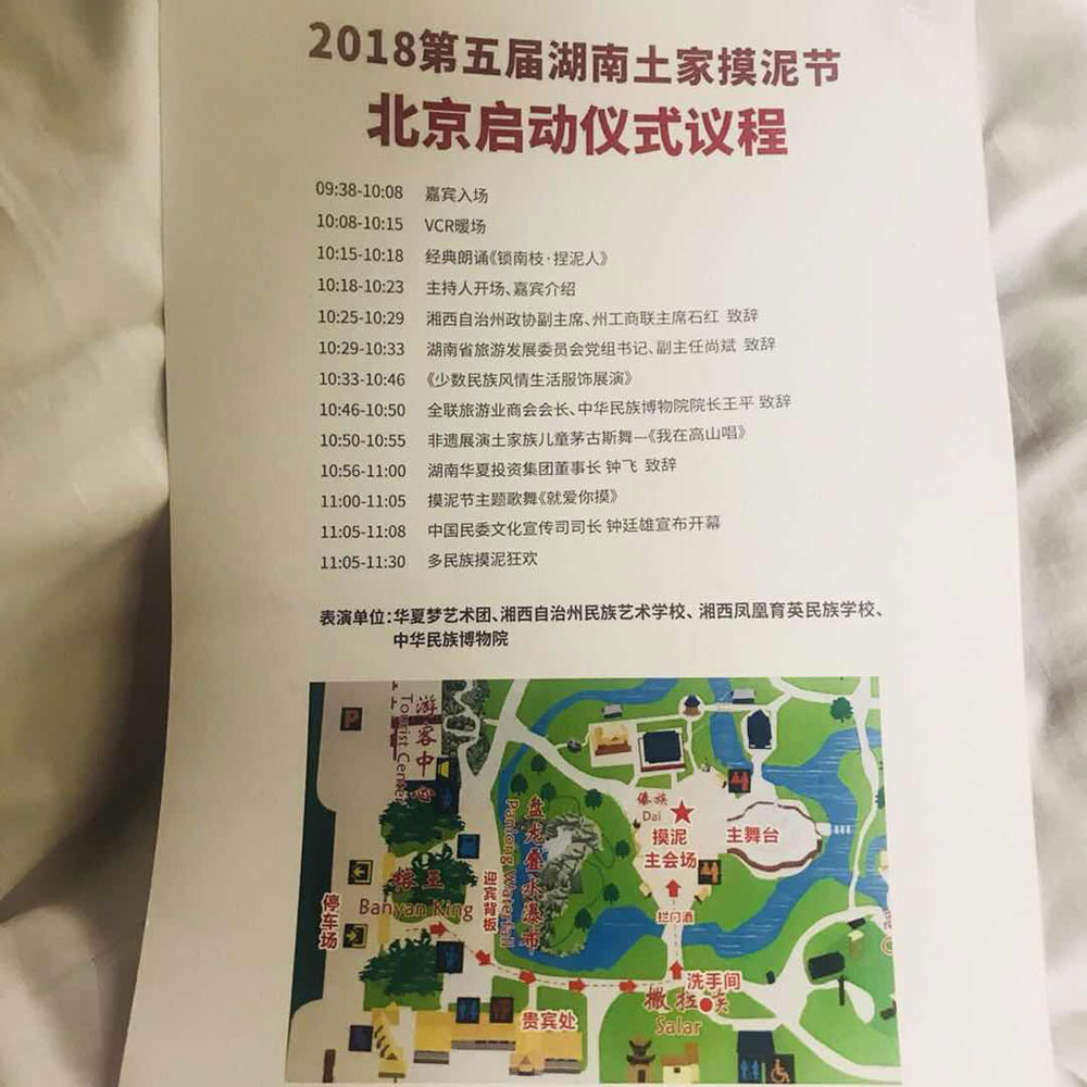 6月22日,由中共湘西州委宣传部、州文广新局、州旅发委,湘西自治州工商联主办,湖南华夏投资集团有限公司承办的“2018第五届湖南土家摸泥节”在北京中国民族博物院启幕。湘西自治州民族艺术学校作为表演单位,为此次活动表演开场经典朗诵《锁南枝 捏泥人》及摸泥节主题歌舞《就爱你摸》,赢得各界嘉宾及领导的高度赞扬。