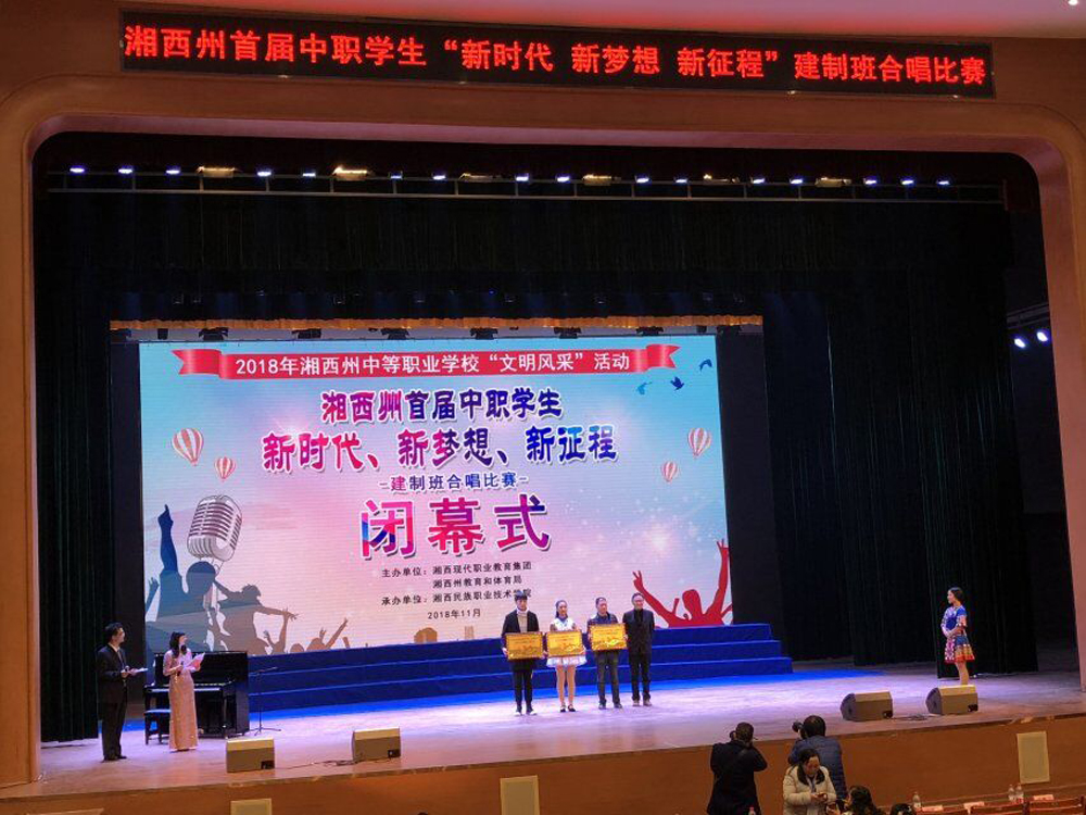为进一步弘扬主旋律,丰富校园文化生活,活跃我校校园艺术氛围,提高学生的道德品质,彰显学生积极向上的精神风貌,丰富活跃第二课堂,切实提高学生的合唱艺术水平,推动我校学生合唱艺术的发展,从而提高学生的艺术修养和审美情趣,陶冶情操,切实加强精神文明建设。这次比赛活动由湘西自治州教育和体育局主办,11月25日上午在湘西州民族职业技术学院开展“文明风采”活动学生建制班合唱比赛,此次比赛由我校2015级学生参与,黄诗源老师担任音乐总指挥,周霞老师担任钢琴伴奏,在师生的共同努力下我校合唱歌曲《职业教育歌》、和《库斯克邮车》获得了二等奖。通过本次活动,确实激发了学生热爱学校,热爱艺术、热爱生活的情感,丰富了学生学习的生活,展示了我校实施素质教育的成果,用高尚的艺术引导人,用完美的艺术塑造人,提高了学生的表现力。