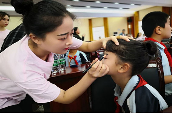 28日下午1:00,州艺校志愿者所乘坐的大巴准时到达州特校,在宽敞明亮的演播厅里两校老师和演员们互助互爱,欢快地做着演出前走台、化妆、音响、服装等准备工作。