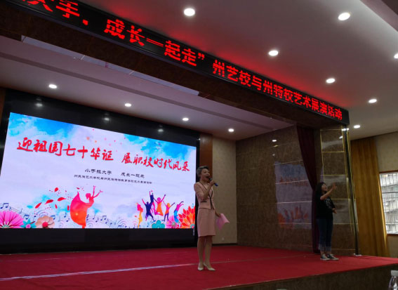 本次展演活动由州艺校的荣萍老师来主持,州特校陈芳老师做手语翻译。
