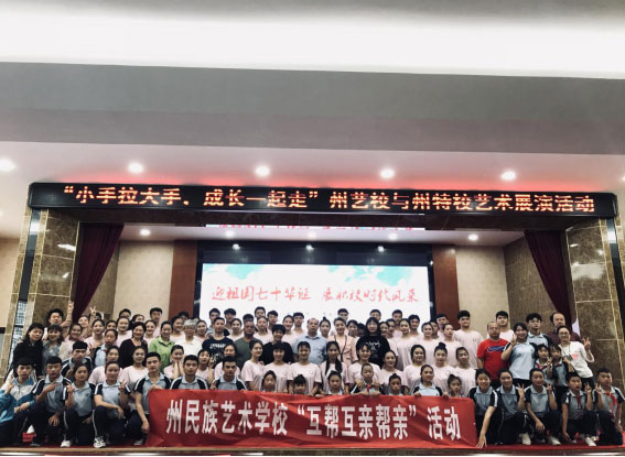 通过本次慰问联谊活动,州民族艺术学校的文化志愿者们肩负时代使命,展职校风采,携手州民族特殊教育学校师生共同庆祝祖国七十华诞,互相帮助,共建美丽校园,让爱心之火温暖你我美丽人生。