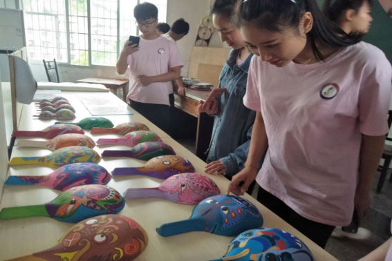 然后志愿者们参观了州特校孩子们学习的教室,欣赏了孩子们美丽的手工艺品和书画作品,用刚学会的手语对州特校师生表达了由衷的赞美,孩子们报以阳光般灿烂的笑容,下午4:16,州艺校文化志愿者们与州特校师生互相挥手告别,车子缓缓开出州特校。