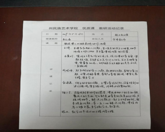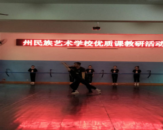 湘西州民族艺术学校于5月13日、14日、15日开展了三个教研组的优质课听评课活动,全校老师观摩了专业组韦文涛老师的《双腿前桥》、王昱欣老师的《划圈》、音乐组黄诗源老师的《贝尔加湖畔》。